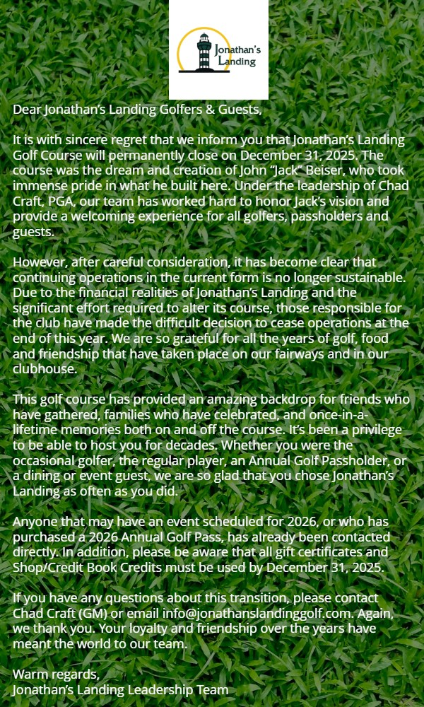 Purchase a Jonathan’s Landing Gift Card – $150